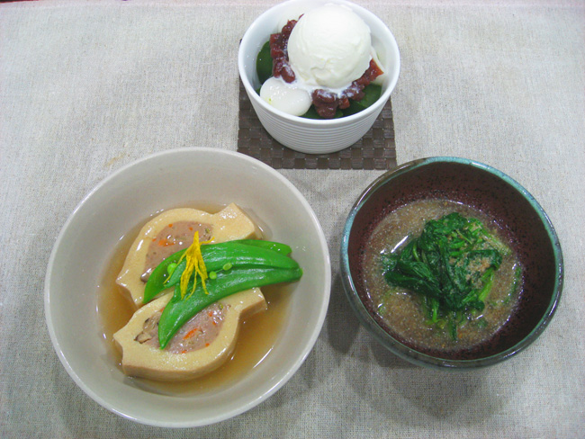 | 1回目 | 包丁の使い方と美しい姿勢 | ★春巻き ★細切り大根のスープ ★大根餅 ★マンゴー杏仁豆腐 |
